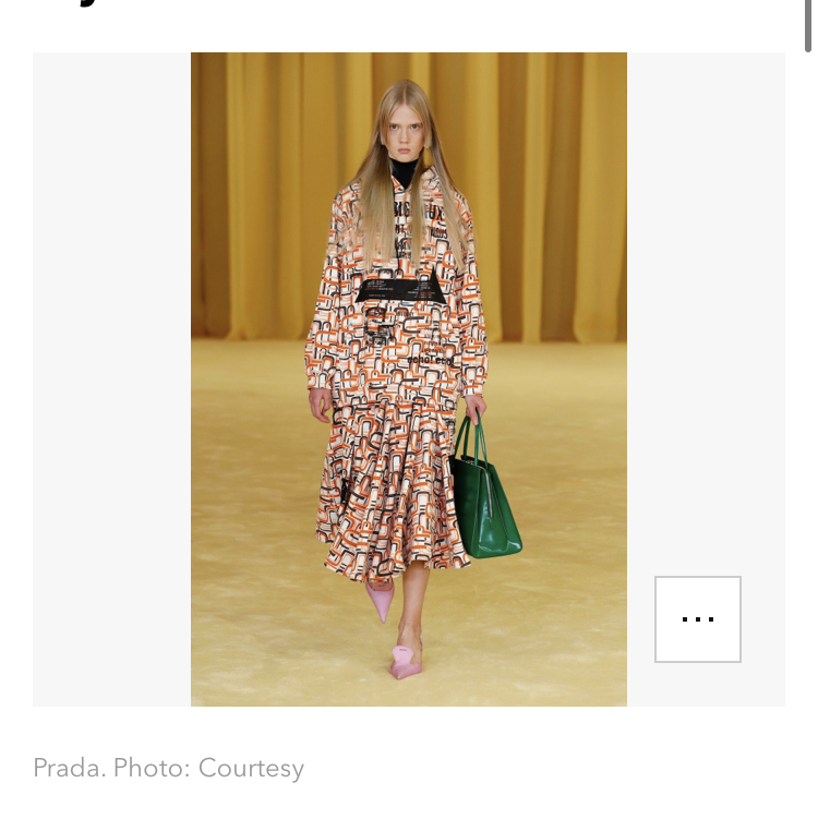 화상 회의 등을 많이 하면서 ‘나 프라다 입었다’ 하는 느낌으로 로고가 목 끝까지 올라와 있는 것을 보실 수 있어요.