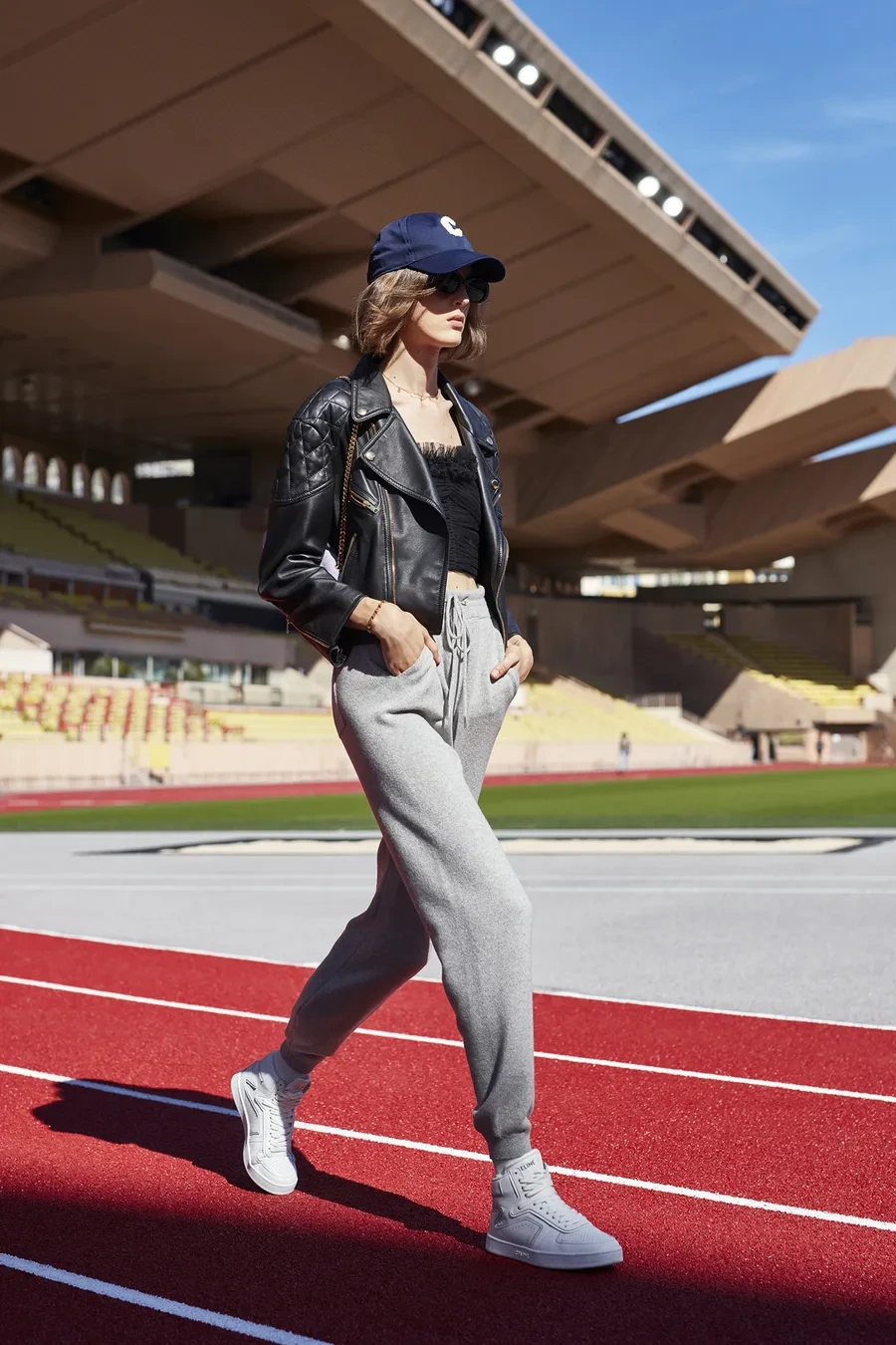 편한 옷, 블랙, 일상생활에서 캐주얼하게 입을 수 있을 만한 그런 옷들을 쉽게 볼 수 있었어요. 당연히 트레이닝복은 빠지지 않고 등장했고요. 패션쇼를 트랙 경기장 위에서 진행해 캐주얼하고 스포티한 무드를 극대화시켰답니다.