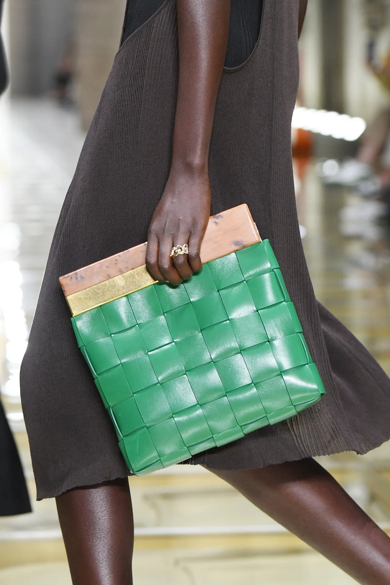 가죽을 얼기설기 얽은 라탄백 같은 무늬는 보테가 베네타의 대표적인 무늬인데요. 패션은 이렇게 작은 무늬를 일부러 확 키우기도 해요. 최근 보테가 베네타는 그렇게 키운 무늬로 남성분들이 들고 다니는 클러치를 만들어서 히트를 쳤어요.