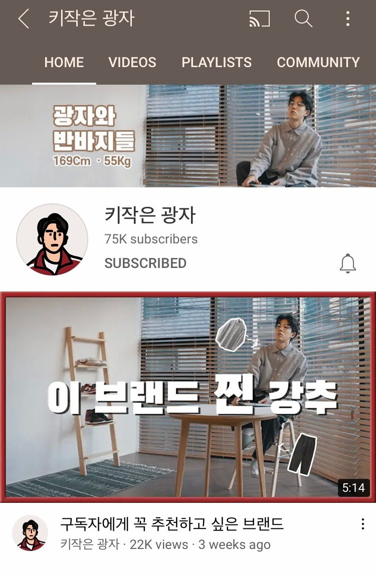 키가 작아서 비율이 고민이신 분들은 키 작은 광자라는 채널을 보시는 것도 좋으실 것 같고, 깔끔한 남친룩이나 꾸안꾸 스타일을 선호하신다면 진진호 님도 추천해요.