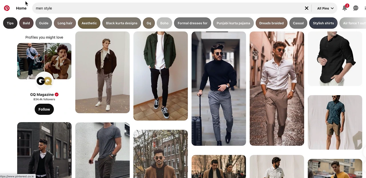 핀터레스트도 여러 번 언급을 했는데 거기서 men style 이런 식으로 치면은 사진이 정말 많이 나와요.