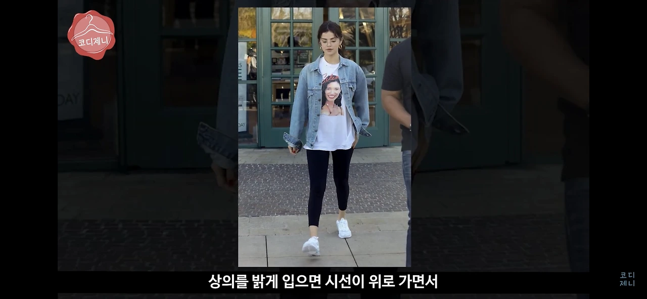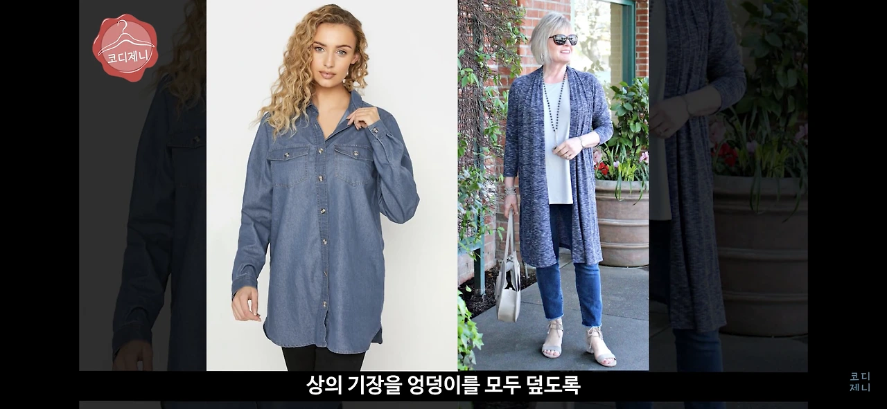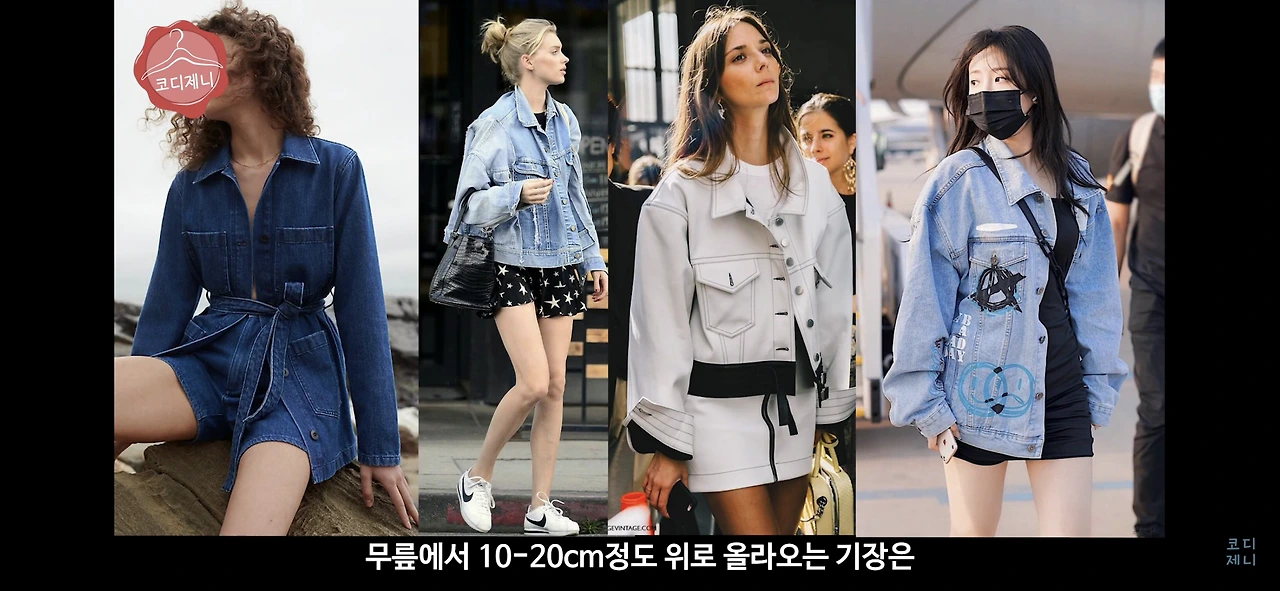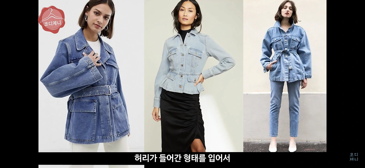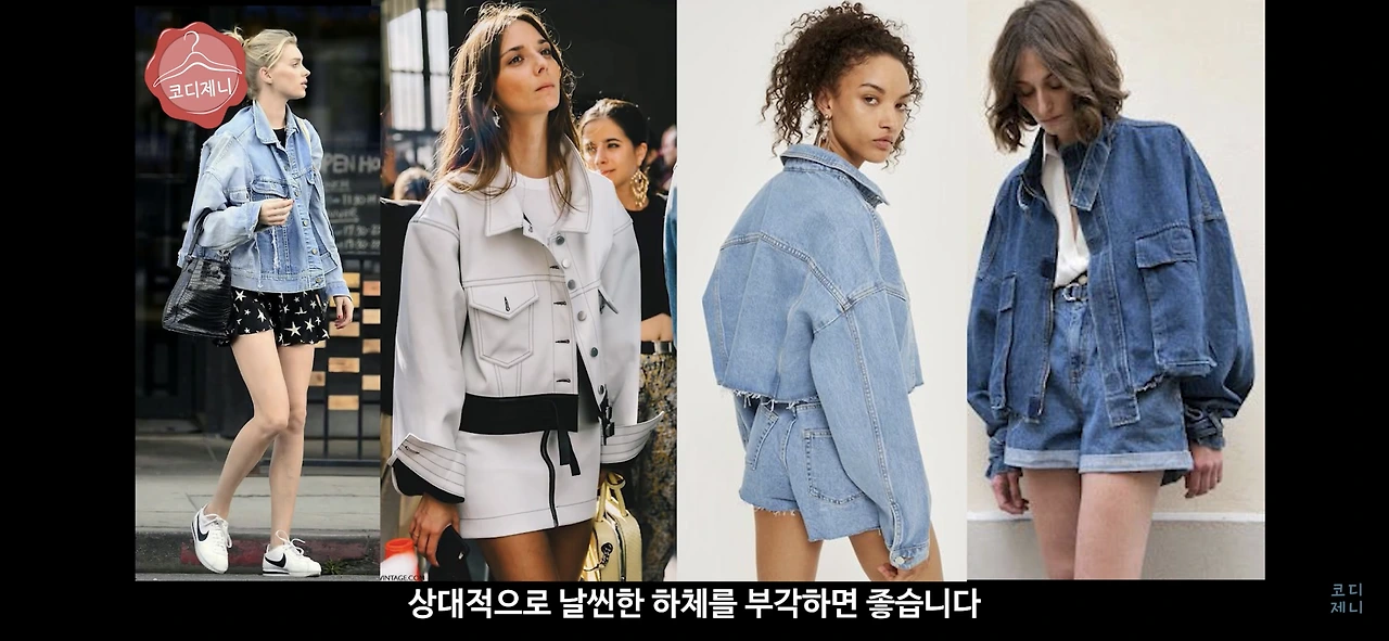 허리가 긴 체형에 너무 짧은 청자켓은 긴 허리를 지나치게 강조할 수 있습니다
