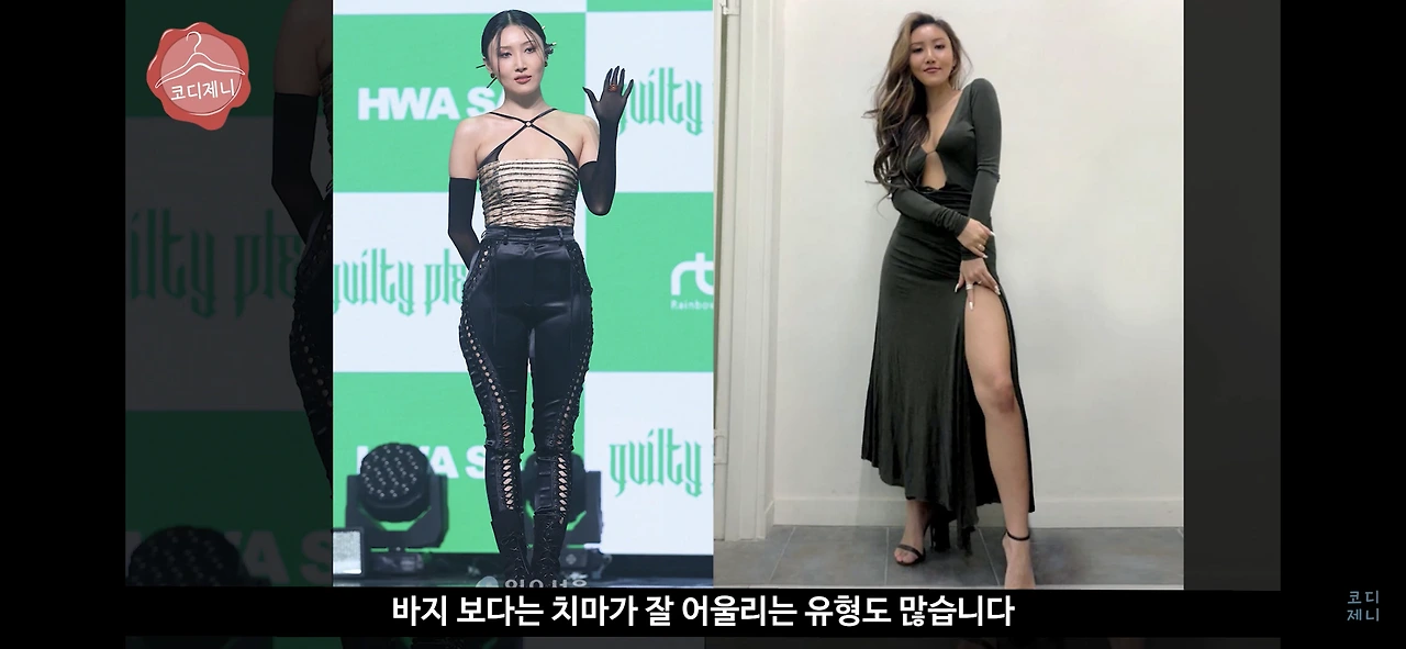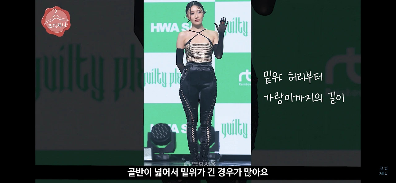 모래시계 체형이라서 허리선을 잡아줬지만 허리선이 지나치게 높으면서 골반을 모두 가리는 기장의 재킷에 종아리 부분이 너무 넓은 부츠컷을 입으면 제가 알기로 이 분 키가 170인데 다소 다리가 짧고 굵어 보이는 느낌을 줄 수 있습니다