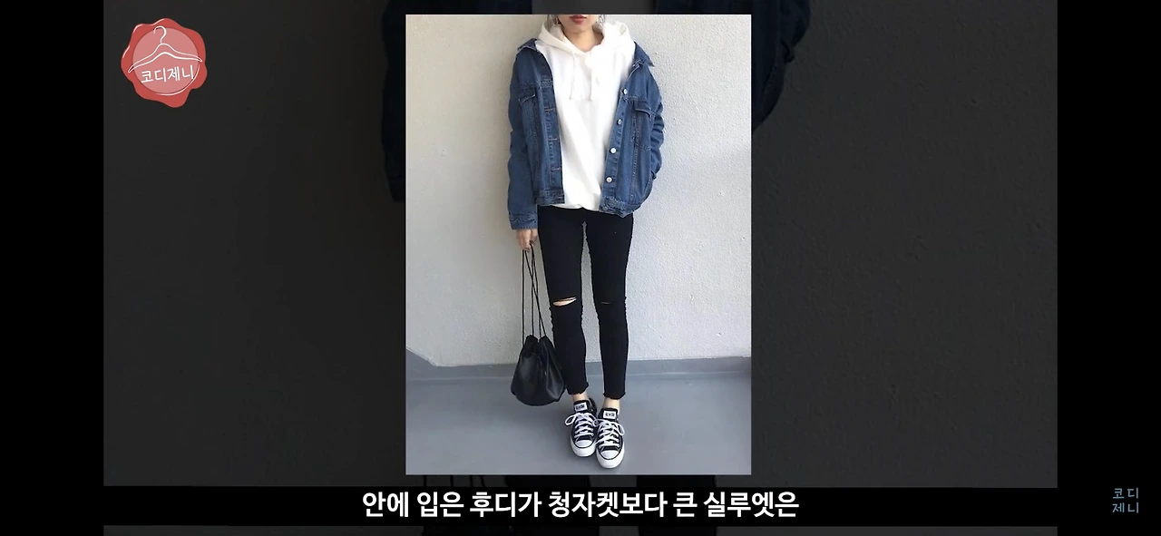 안에 입은 후디가 청자켓보다 큰 실루엣은