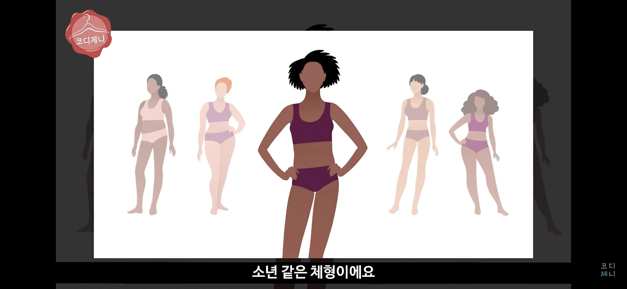 몸에서 굴곡없이 일자로 떨어지는 소년 같은 체형이에요