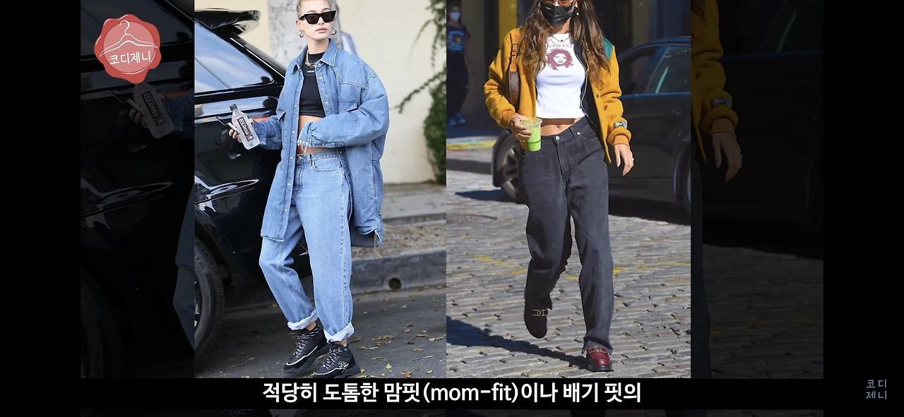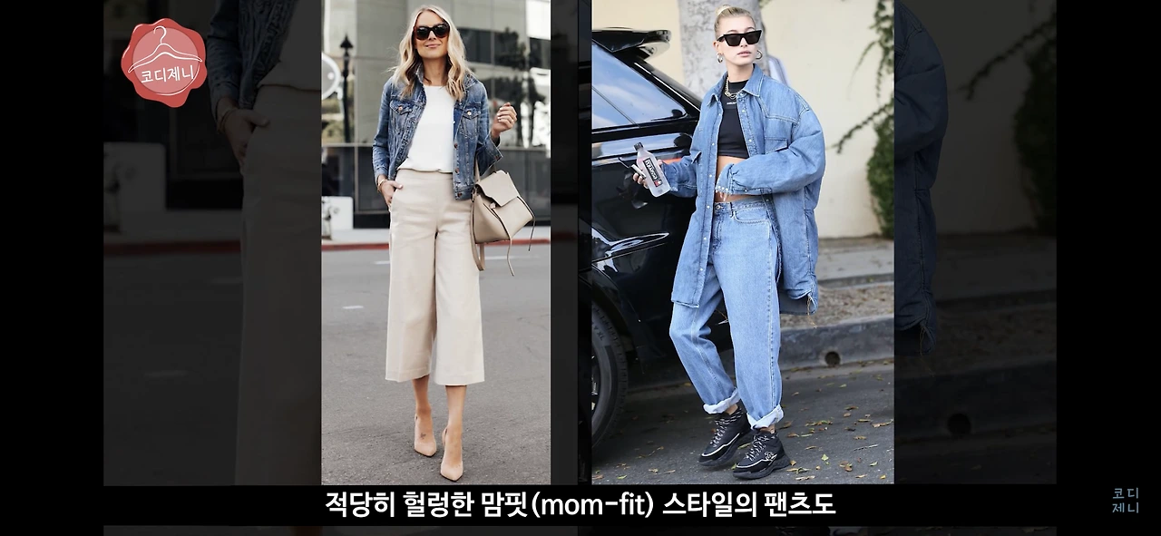 적당히 헐렁한 맘핏(mom-fit) 스타일의 팬츠도 붙는 상의와 함께 입으면 하체가 예뻐 보이고