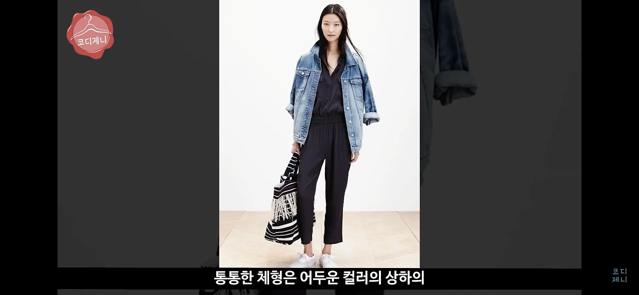 통통한 체형은 어두운 컬러의 상하의 혹은 점프수트를 청자켓 안에 입으면 허리선을 높게 잡아서 다리가 길어보이고 날씬해 보입니다