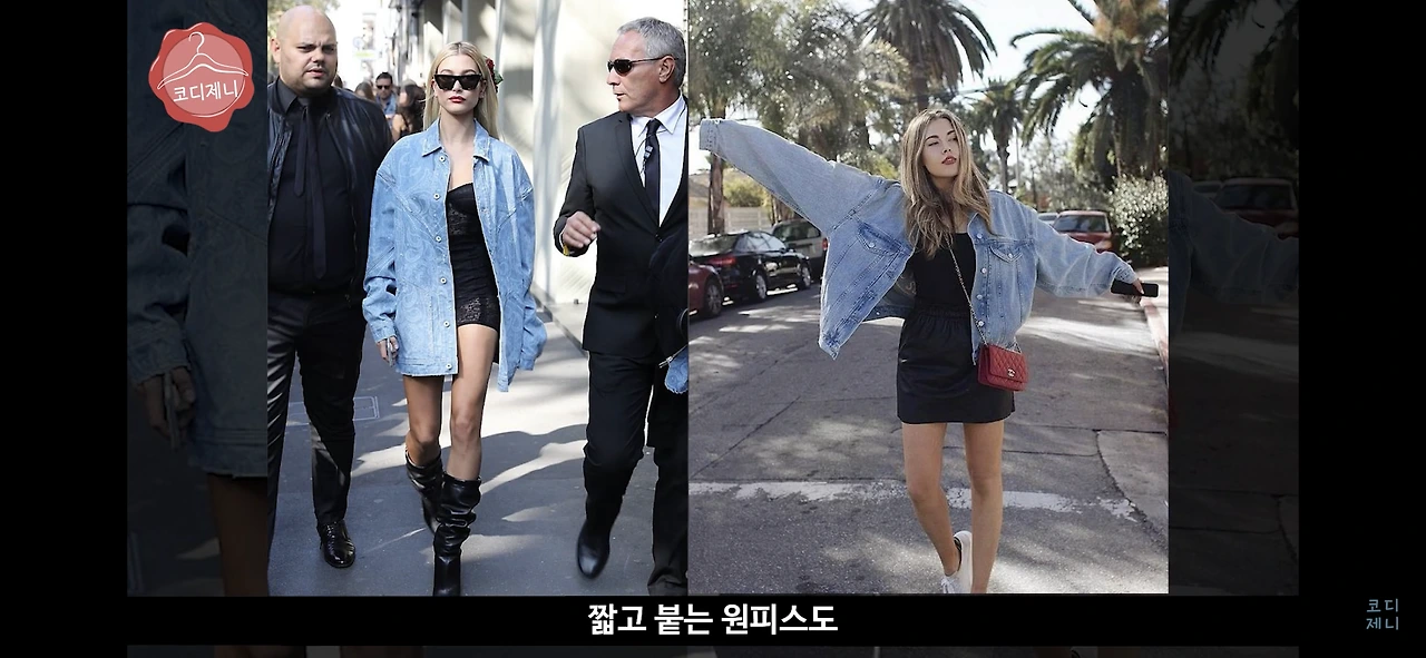 짧고 붙는 원피스도 데님자켓과 함께 매치하면 섹시하면서도 캐주얼한 느낌을 줄 수 있어요