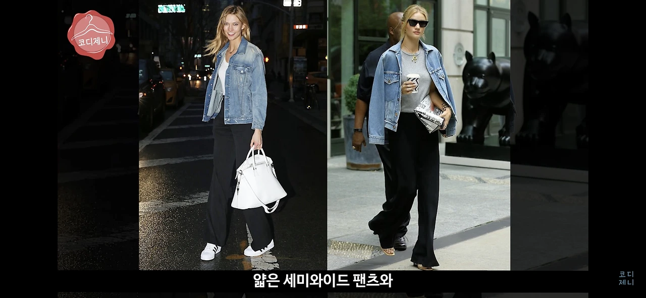 통이 많이 넓은 와이드 팬츠도 아주 멋지게 소화할 수 있습니다