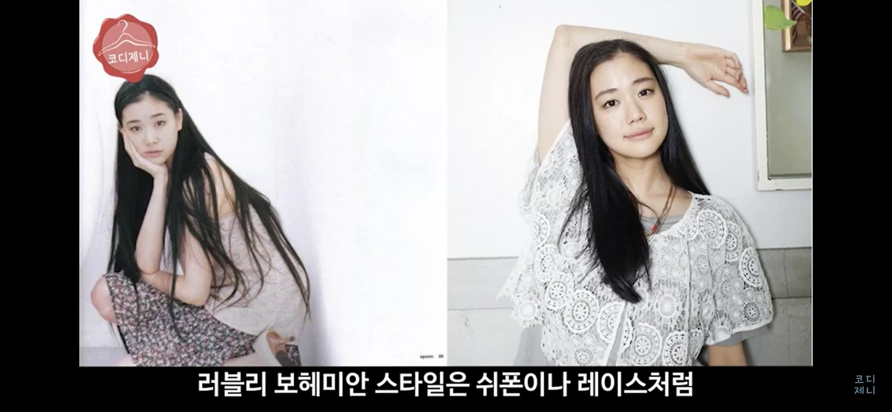 국내에 러블리 보헤미안룩을 잘 소화하는 연예인으로는 동백꽃 필 무렵에 공효진 님 리즈시절의 려원님을 꼽을 수 있어요