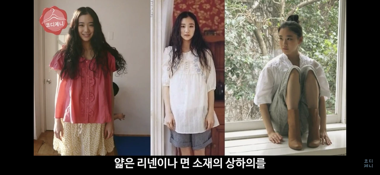 얇은 리넨이나 면 소재의 상하의를 큼직한 핏으로 코디하면 모던하고 자유로운 느낌이 나고요