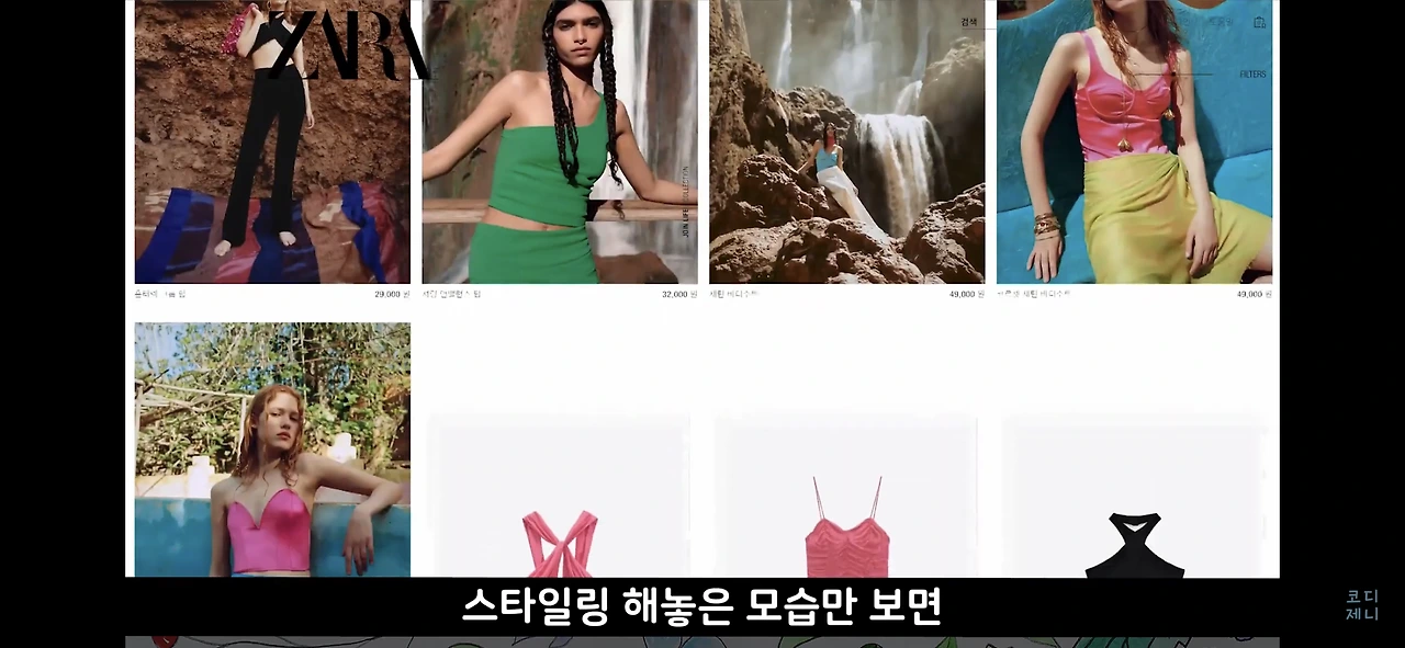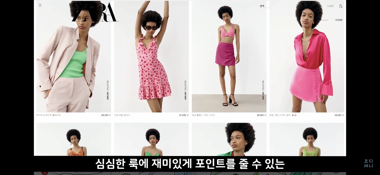 유니크하고 시크하면서 유행의 첨단을 달리는 자라입니다. 스타일링을 해 놓은 모습만 보면 너무 과해보일 수 있지만 막상 제품 하나하나를 따로 놓고보면 심심한 룩에 재미있게 포인트를 줄 수 있는 아이템이 많아요.