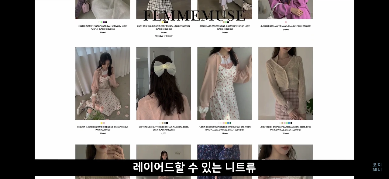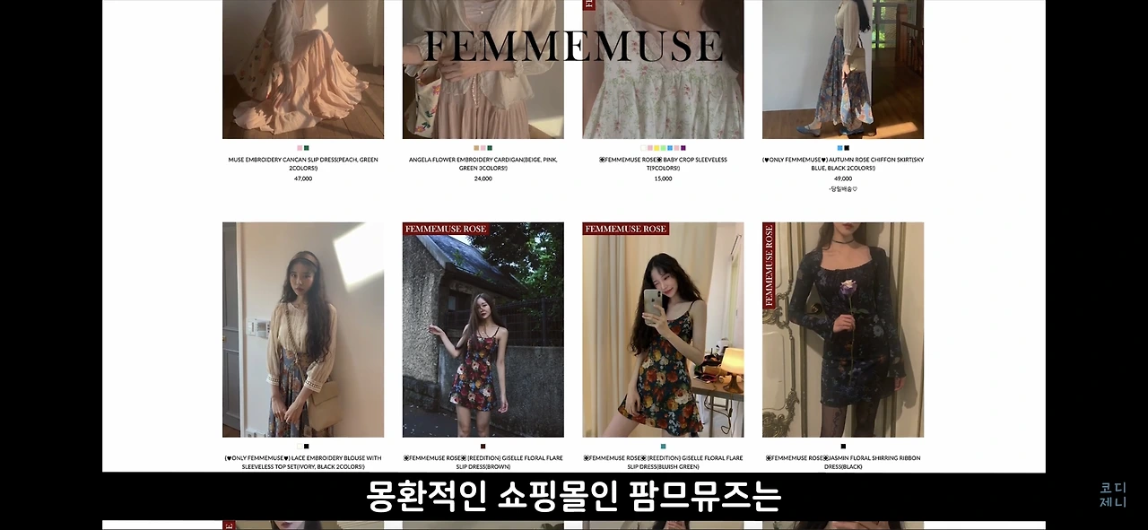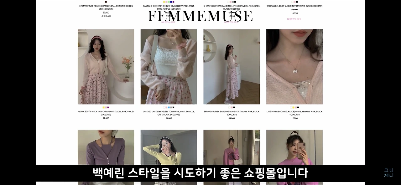 러블리하고 힙하면서 몽환적인 쇼핑몰인 팜므뮤즈는 비교적 저렴한 가격으로 쉽게 백예린 스타일을 시도하기 좋은 쇼핑몰입니다.