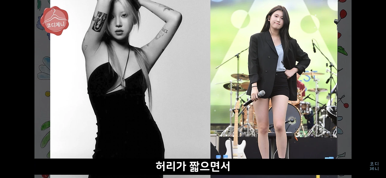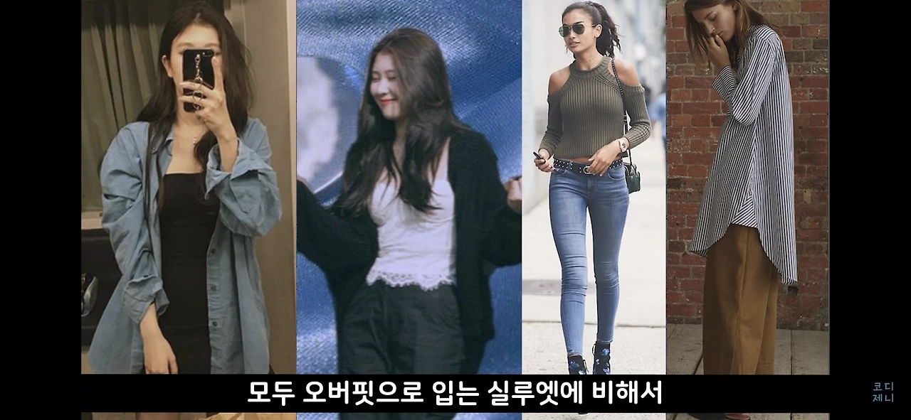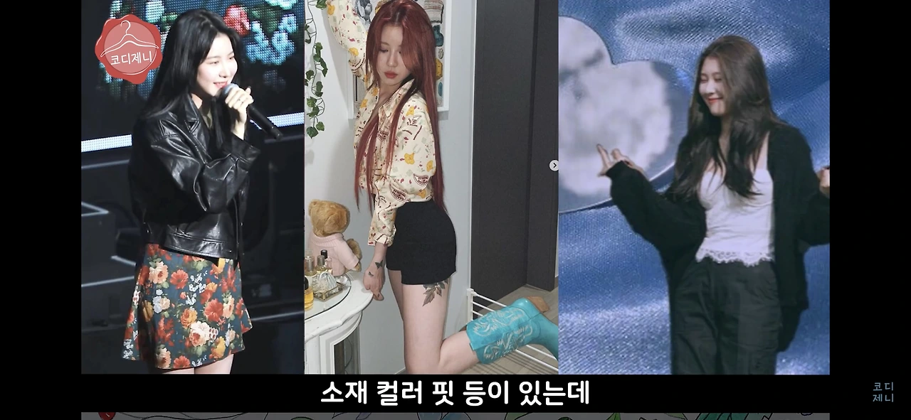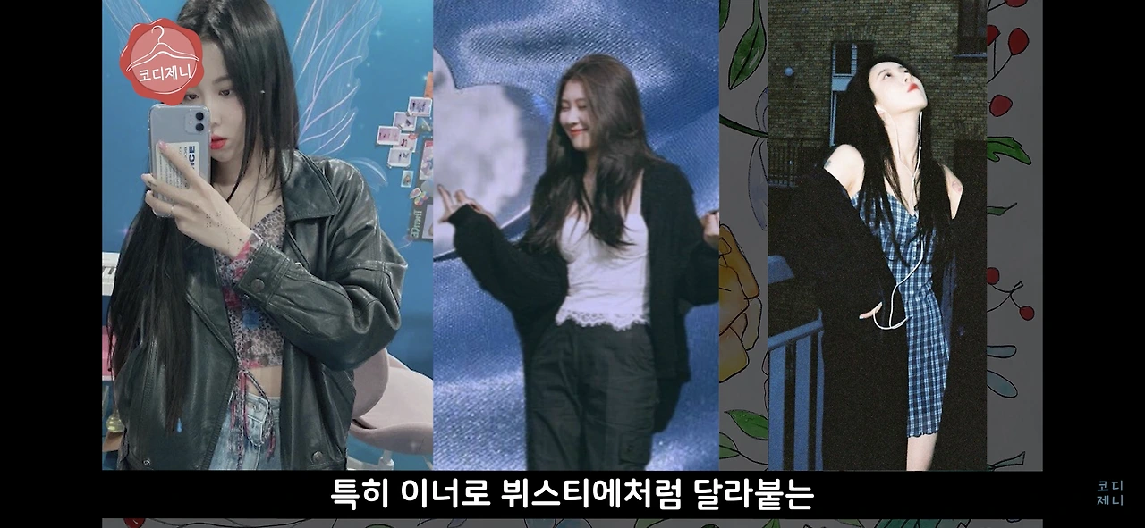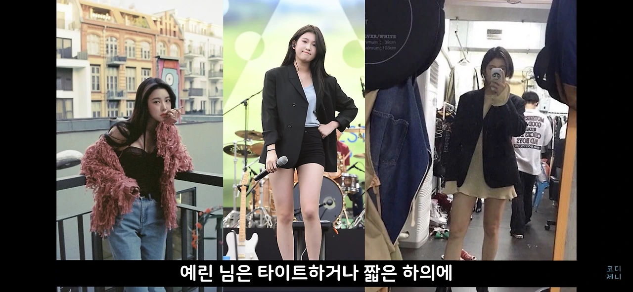 예린 님은 타이트한 상의에 오버핏 하의를 입거나, 타이트하거나 짧은 하의에 오버핏 아우터를 입는데,