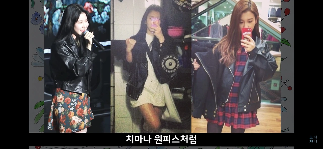 예린 님은 반항적인 락시크 무드를 강조하는 오버핏 가죽자켓을 앞에서 봤던 섹시한 이너탑과 함께 입거나