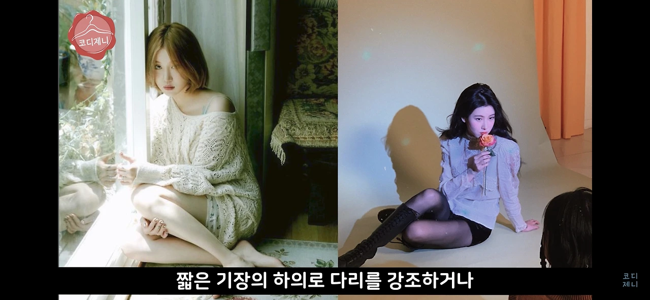 짧은 기장의 하의로 다리를 강조하거나,
