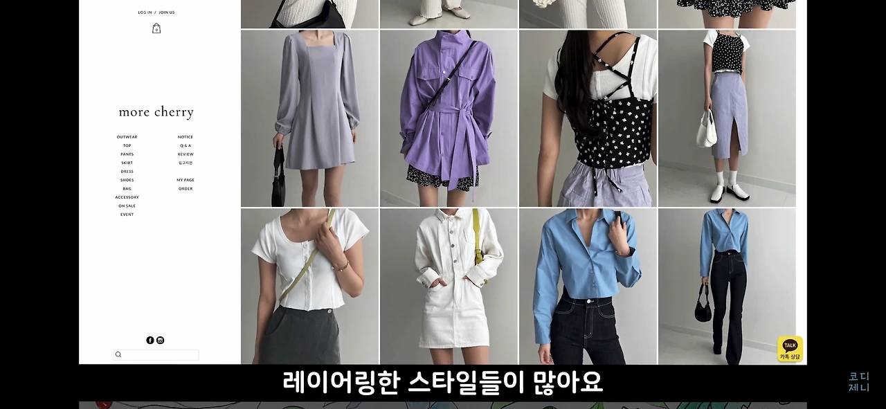 타이트하거나 루즈한 핏의 적절한 선을 잘 지켜서 코디하는 쇼핑몰이니 코디를 참고해서 믹스매치하기에 좋습니다.