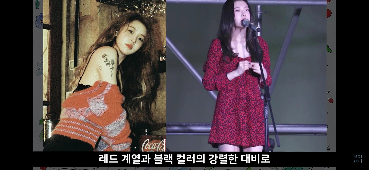 레드 계열과 블랙의 강렬한 컬러 대비로 섹시한 카리스마를 연출하기도 해요.