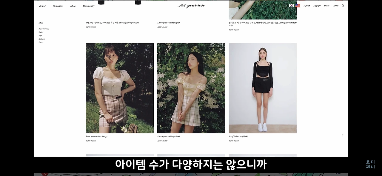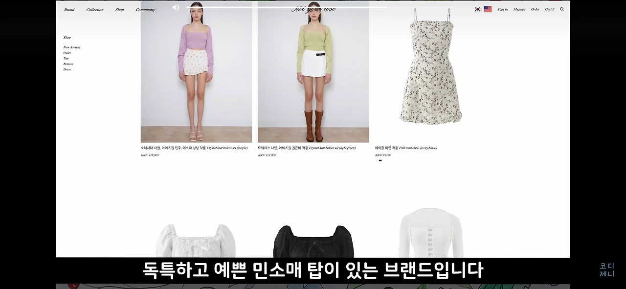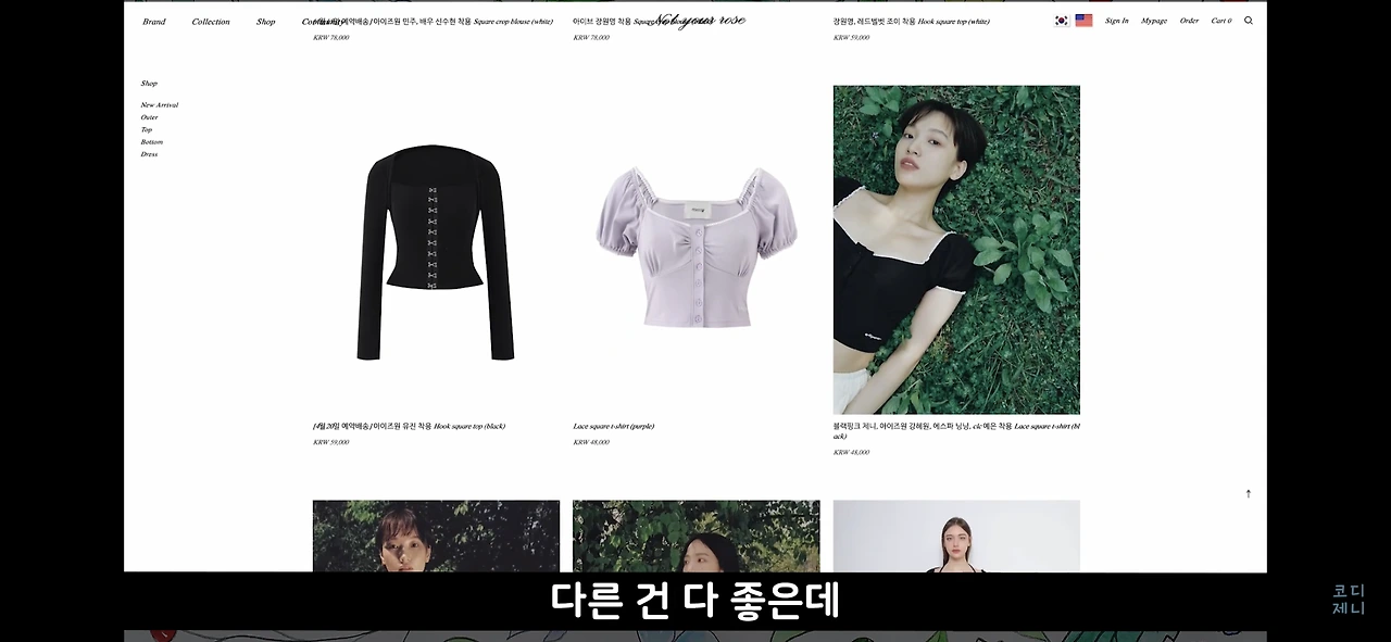 독특하고 예쁜 민소매 탑이 있는 브랜드입니다. 백예린 님 말고도 아이돌 협찬을 많이 하더라고요. 다른 건 다 좋지만 아이템 수가 다양하지는 않으니 이 점 참고하셔서 구경해보세요.