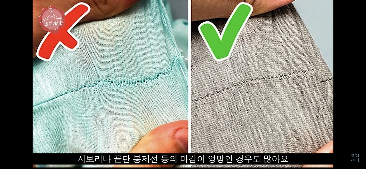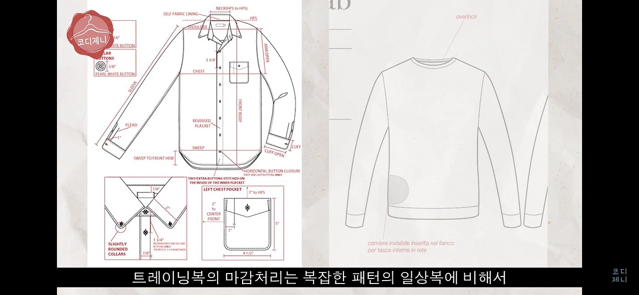 트레이닝복의 마감처리는 복잡한 패턴의 일상복에 비해서 상대적으로 심플하긴 하지만 시보리나 끝단 봉제선 등의 마감이 엉망인 경우도 많아요