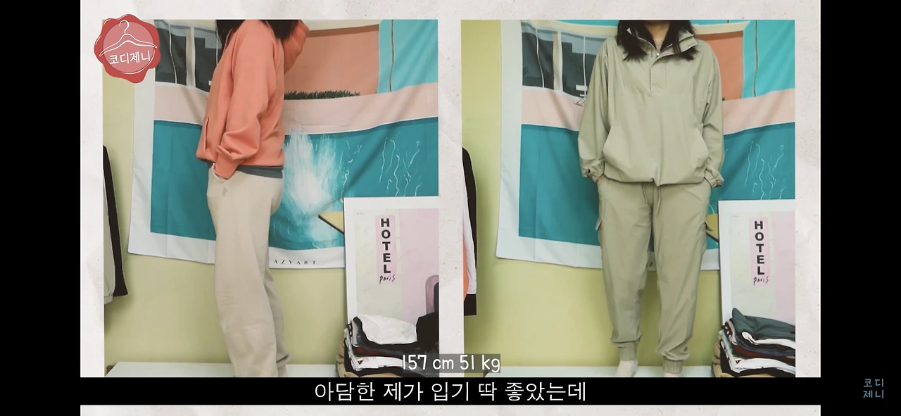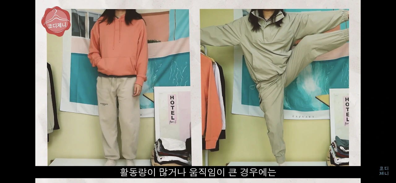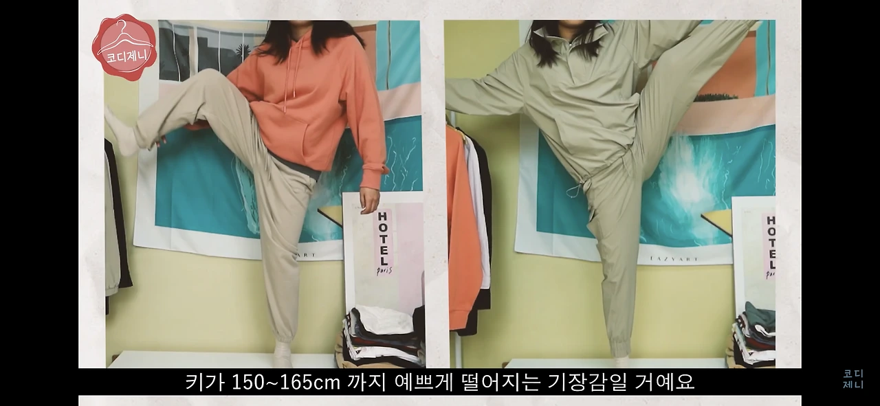 저처럼 한끝 차이에 민감한 분들은 트레이닝복도 프리사이즈보다는 사이즈가 있는 제품을 고르시면 키나 체형별로 어울리는 핏을 고르실 수 있어요