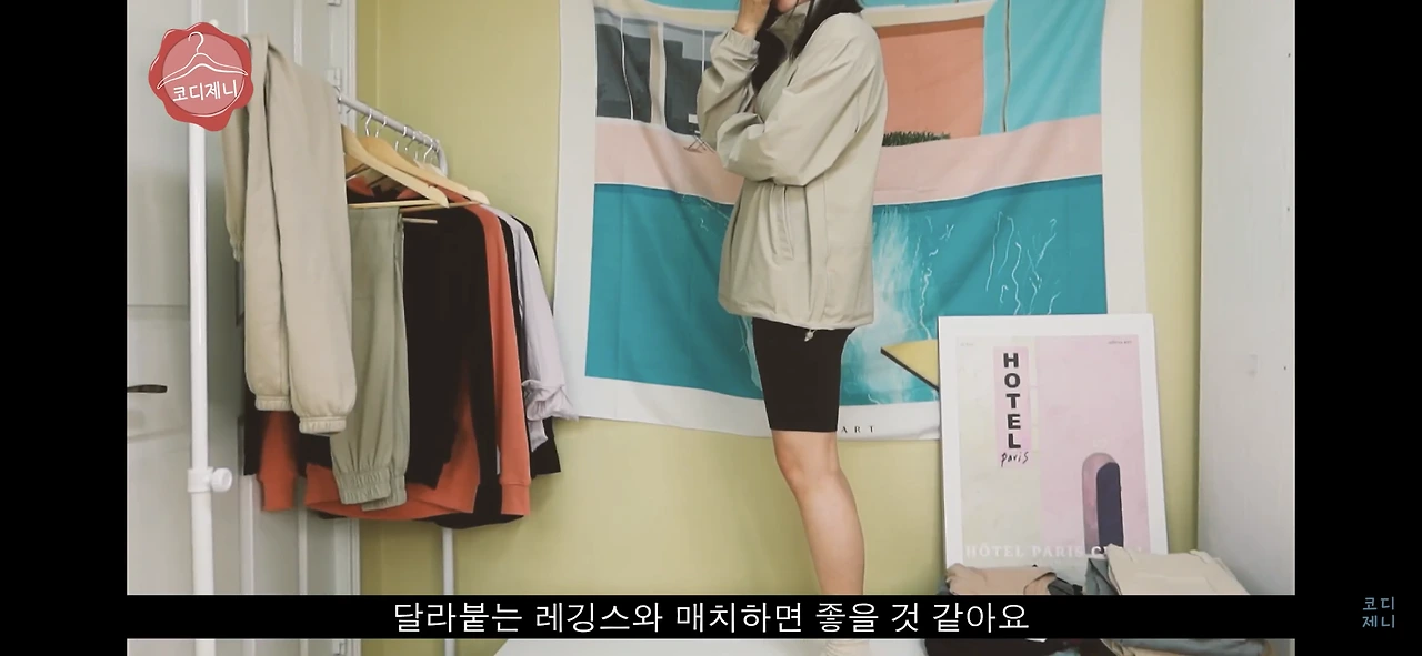 스트링을 풀면 힙을 덮는 기장이라서 달라붙는 레깅스와 매치하면 좋을 것 같아요