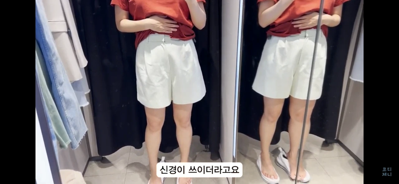 게다가 짧고 통이 크면서 소재가 뻣뻣해서 이런 소재의 반바지는 계단을 올라갈 때나 에스컬레이터 같은 거 탈 때 신경이 쓰이더라고요