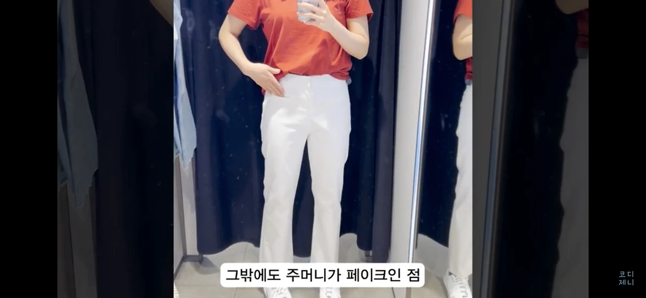 이런 디테일의 바지는 저처럼 허리와 골반의 차이가 크지 않은 일자형 체형이거나 골반보다 어깨가 더 넓은 체형에게는 어울리지 않을 수 있지만 상체에 비해서 하체가 통통하거나 골반이 발달한 분들이 입으면 훨씬 예뻐요