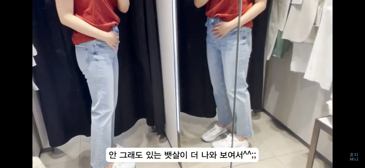 밝은 컬러의 플레어 진이어서 갖고 왔는데 다른 건 다 괜찮았지만 지퍼 부분이 지퍼가 아니라 단추로 되어 있어서 단추가 풀릴까봐 걱정되기도 하고