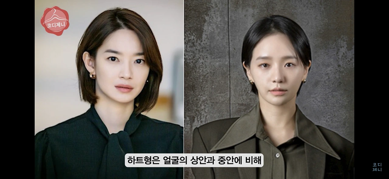 하트형은 얼굴의 상안과 중안에 비해 하안이 작거나 짧은 특징을 갖고 있는 얼굴형이에요