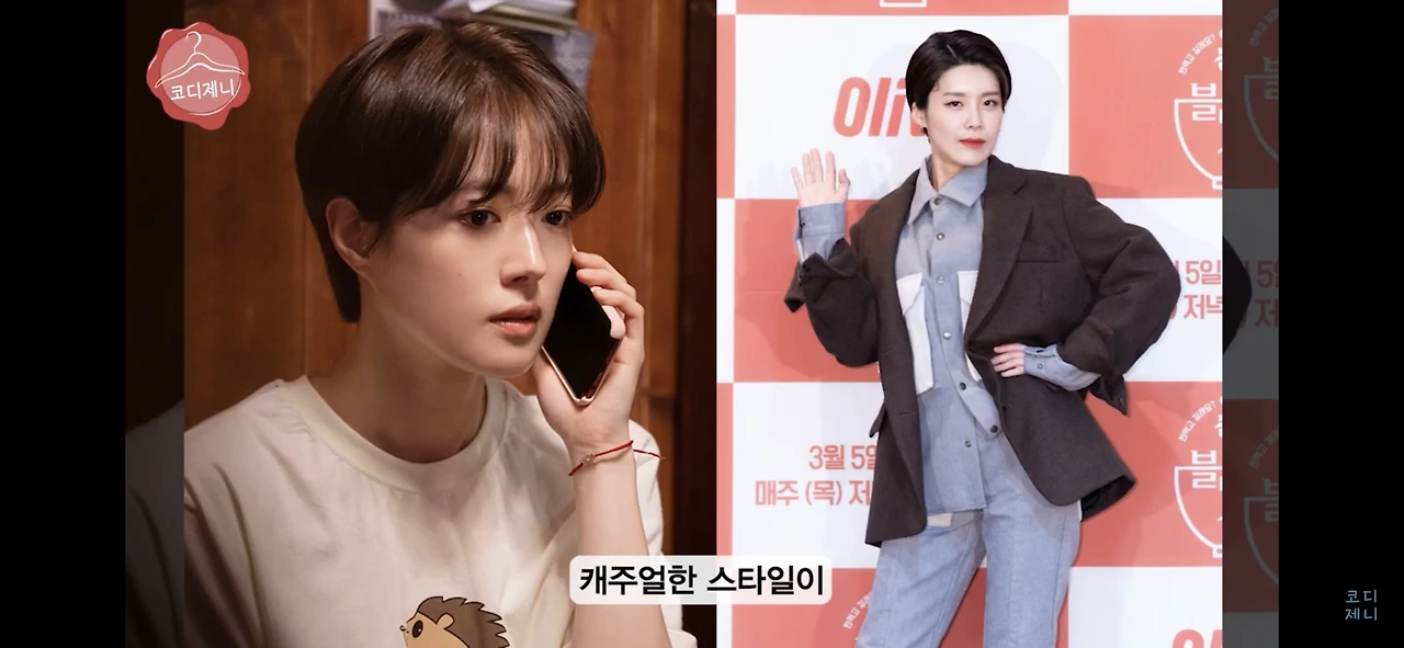 다만 턱끝이 발달한 얼굴형에 귀밑으로 헤어가 전혀 보이지 않을 만큼의 짧은 기장감은 턱의 골격감이 가지고 있는 특유의 보이시함이 극대화 될 수도 있어요