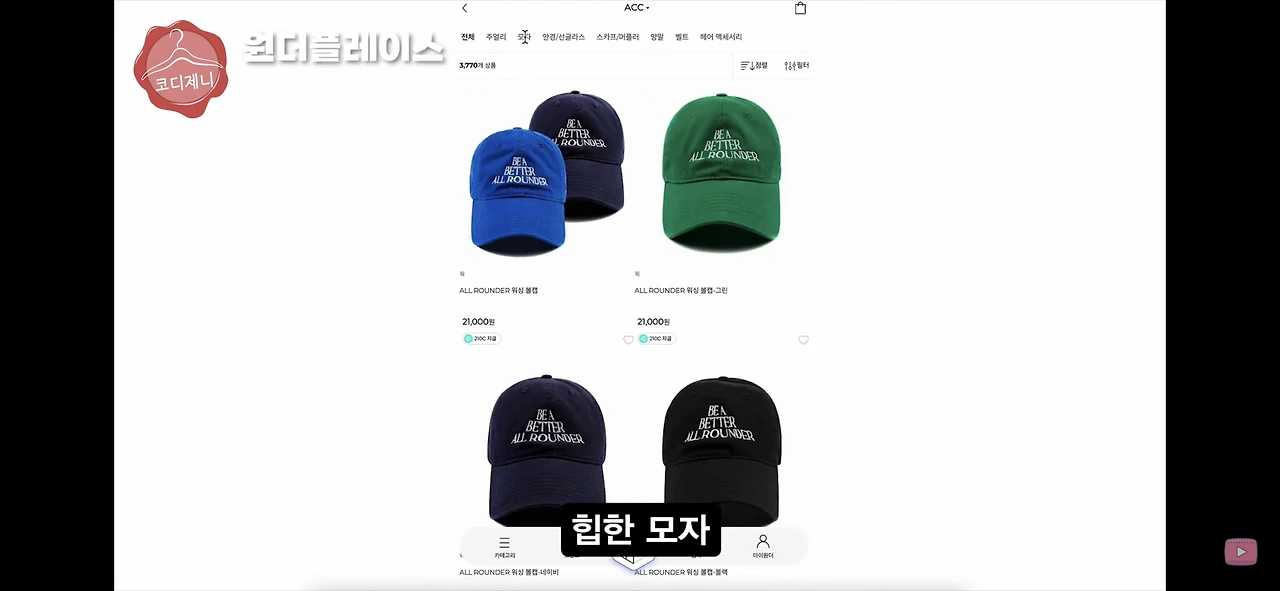 힙한 모자 가방 선글라스 같은 액세서리들도 함께 매치해 볼 수 있어서 좋아요