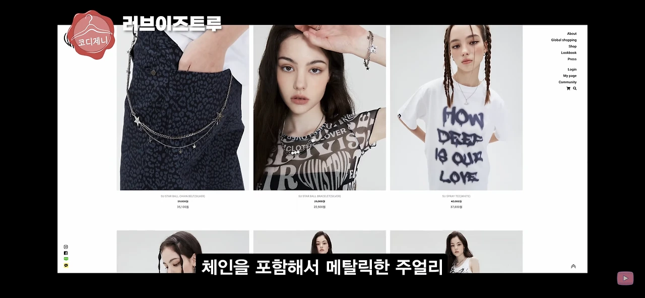아이템 수도 꽤 많고 지난 시즌 옷이나 품절된 옷들도 그대로 남아 있어서 러블리하고 섹시한 펑크룩 스타일링을 구경할 수 있어서 좋더라고요