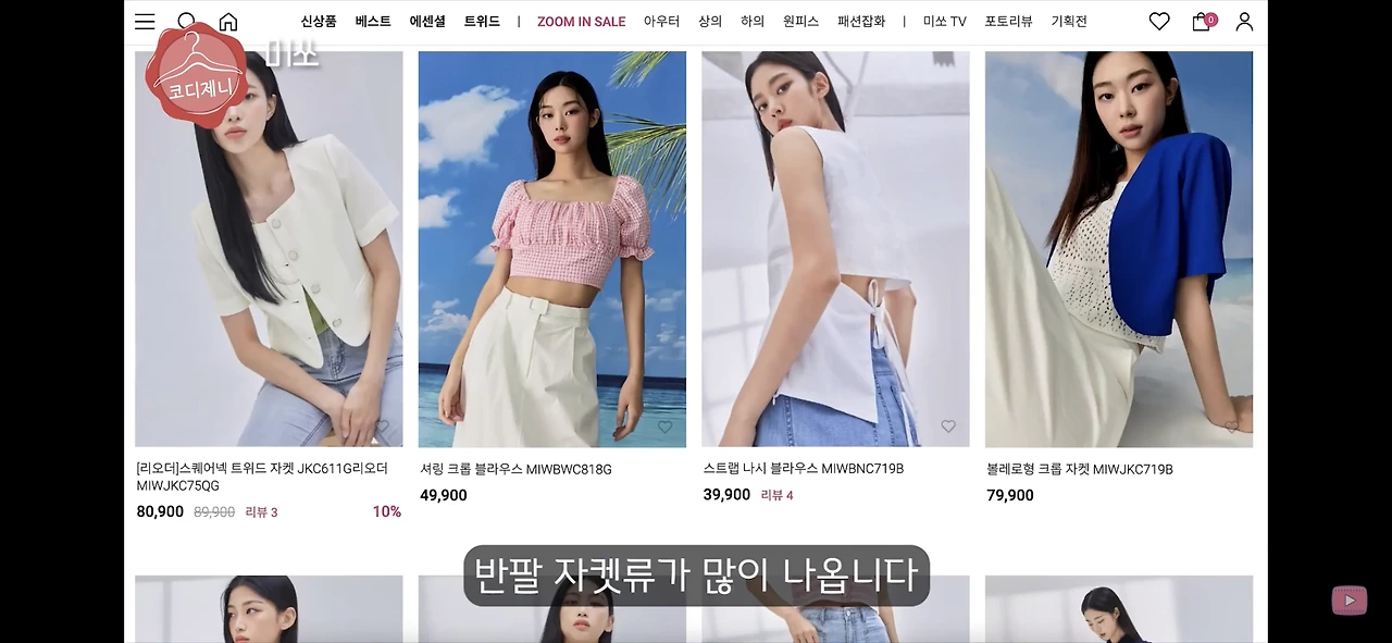 특히 미쏘에서는 한국형 크롭재킷의 근본이라고 할 수 있을 정도로 다양한 스타일과 컬러의 반팔 자켓류가 많이 나옵니다