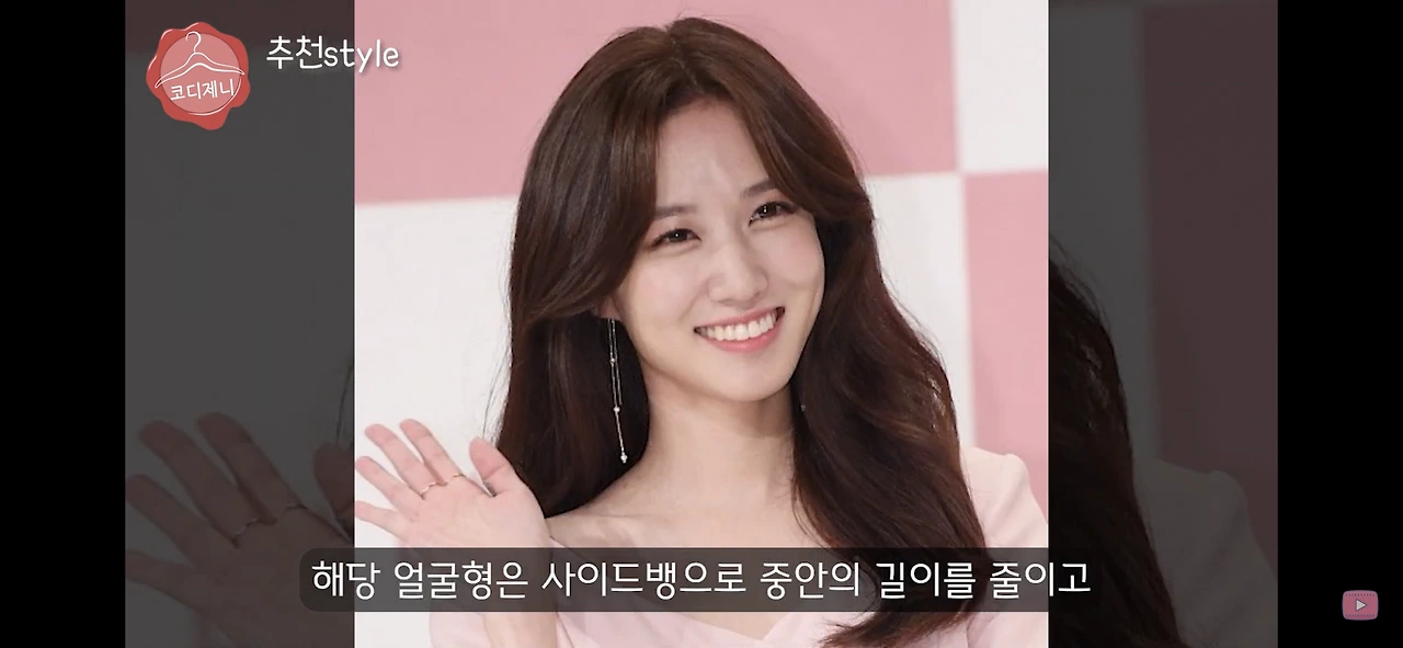 해당 얼굴형은 사이드뱅으로 중안의 길이를 줄이고