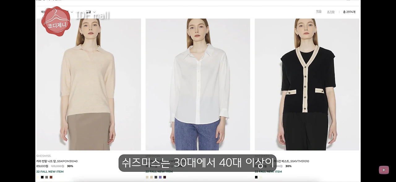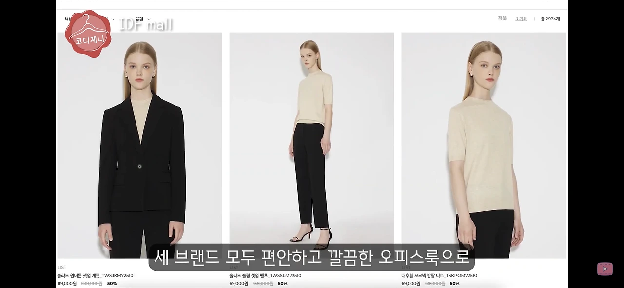 세 브랜드 모두 편안하고 깔끔한 오피스룩으로 입기 좋은 스타일들이 많고 연령대로 보자면 리스트와 시스티나는 20대에서 30대 쉬즈미스는 30대에서 40대 이상이 입기 좋은 디자인과 실루엣들이 많아요