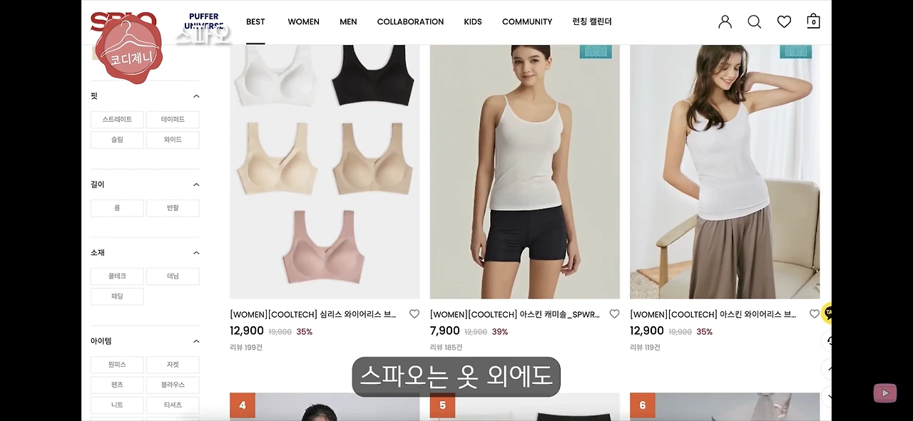 스파오는 옷 외에도 심리스 와이어리스 브라나 팬티 옷안에 받쳐입는 얇은 민소매 등 코디에 요긴하게 쓸 수 있는 속옷류도 괜찮으니까 참고해주세요