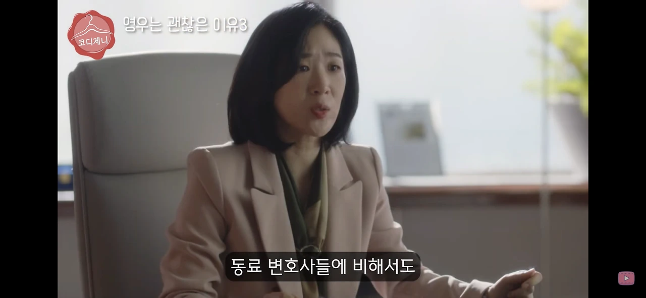 영우 님은 아담하고 귀여운 이미지이지만 의상으로 전문적인 변호사의 이미지를 연출합니다