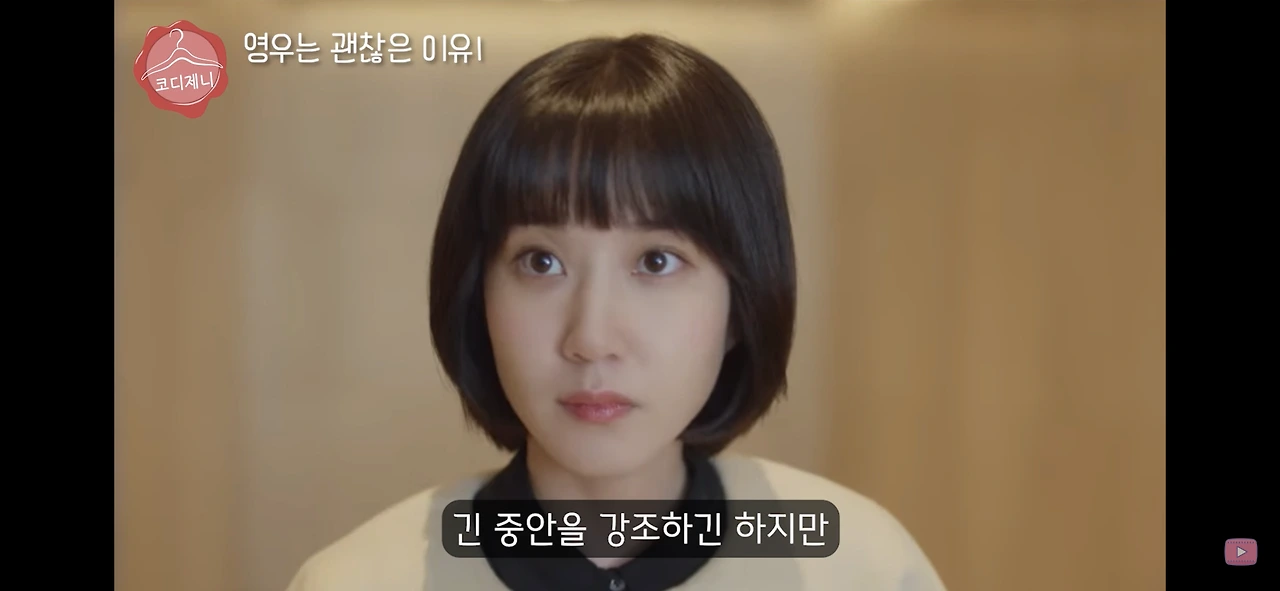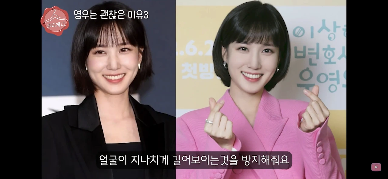 우영우 님의 헤어스타일링은 긴 중안을 강조하긴 하지만