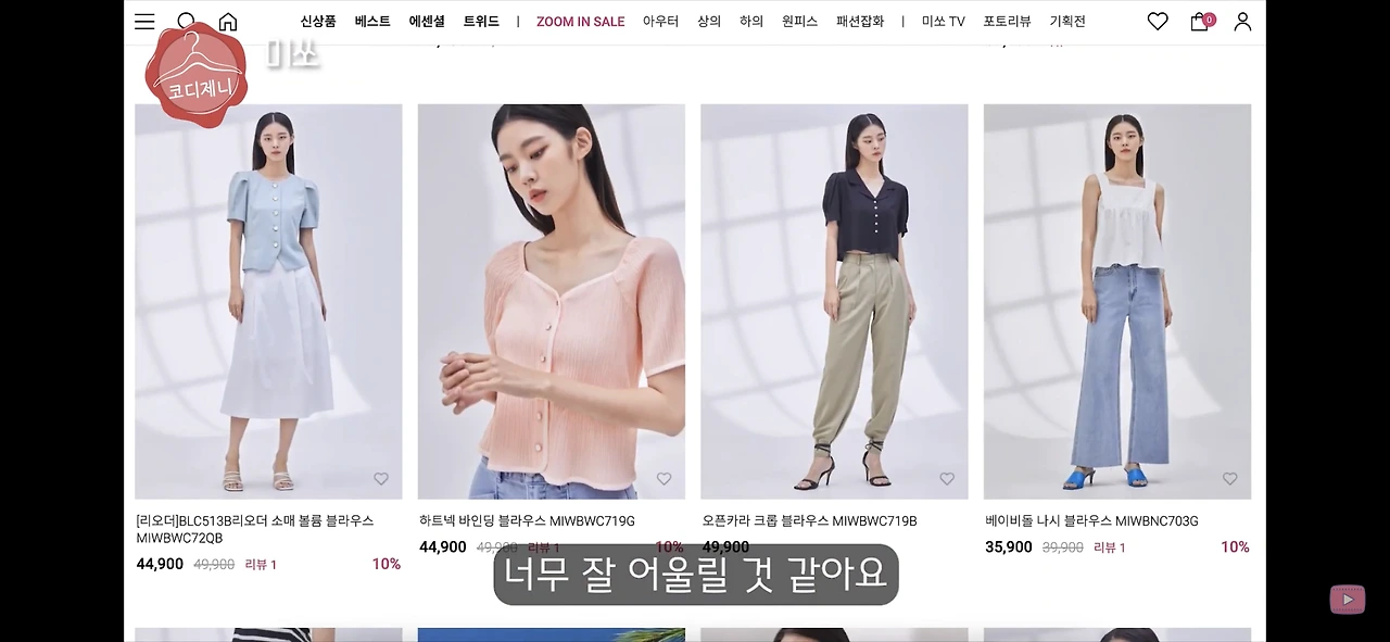 특히 위클리코디라는 탭에는 예쁜 여름 코디들을 참고할 수 있고 해당 코디에 사용한 제품들을 바로 찾을 수 있는 링크가 함께 있어서 너무 편리합니다