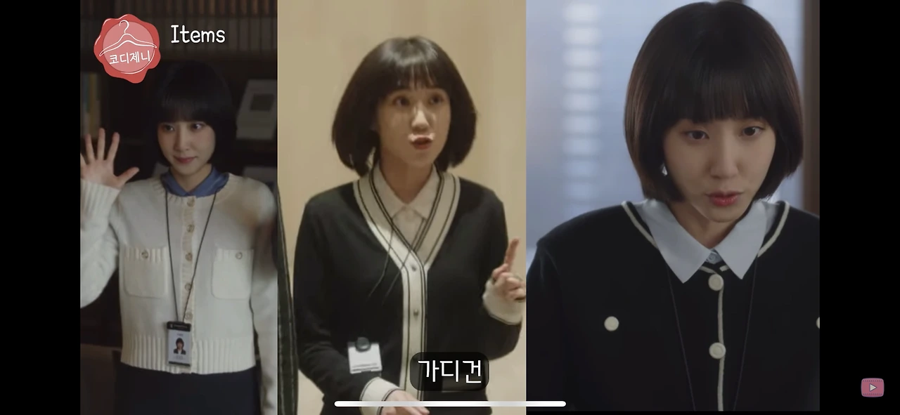 테두리에 배색이나 바인딩이 들어간 가디건이나 자켓류가 많아서 우영우 님이 입으면 찰떡이겠다 싶었고요