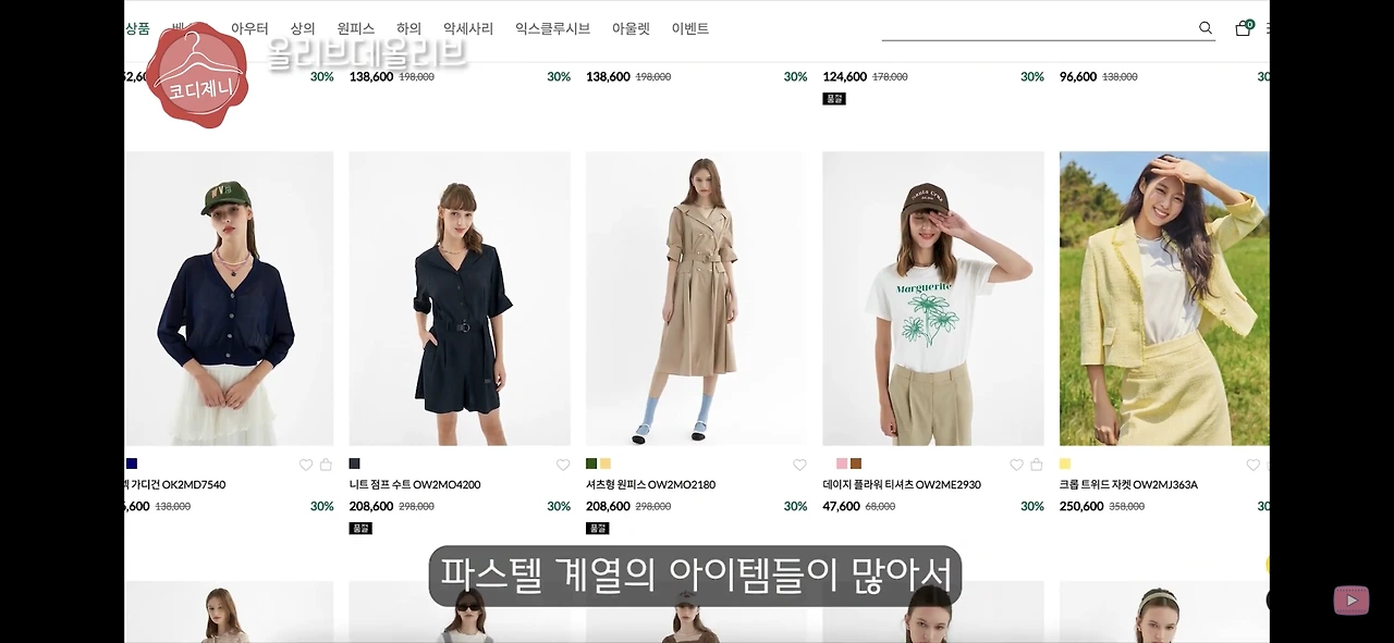 심플하지만 포인트가 되는 가디건이나 반팔 자켓류 A 라인 원피스나 스커트들이 눈에 띄었어요