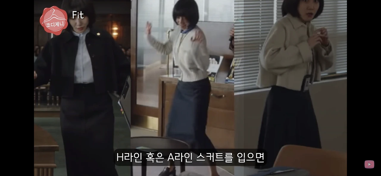H라인 혹은 A라인 스커트를 입으면 부하거나 왜소해 보이지는 않으면서 하체가 길어보일 수 있습니다