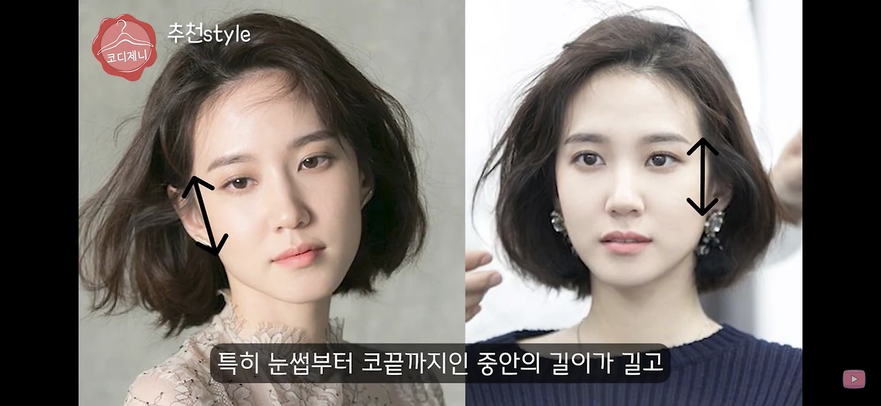 그래서 하안이 긴 유형에 비해서는 턱 끝까지 오는 단발이 비교적 잘 어울리지만