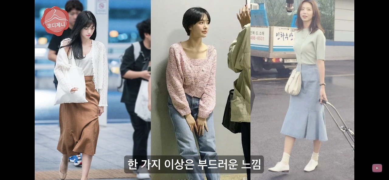 다만 페미닌한 분위기를 위해서는 상의 하의 아우터 모두 딱딱하고 뻣뻣한 소재를 입는 거 보다는