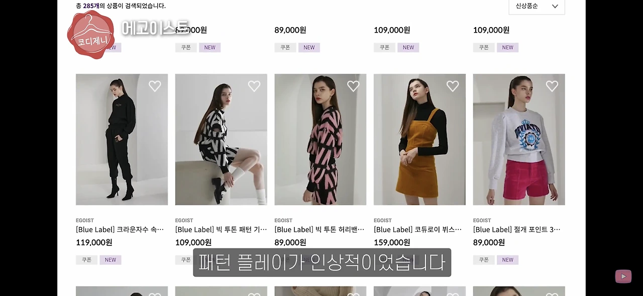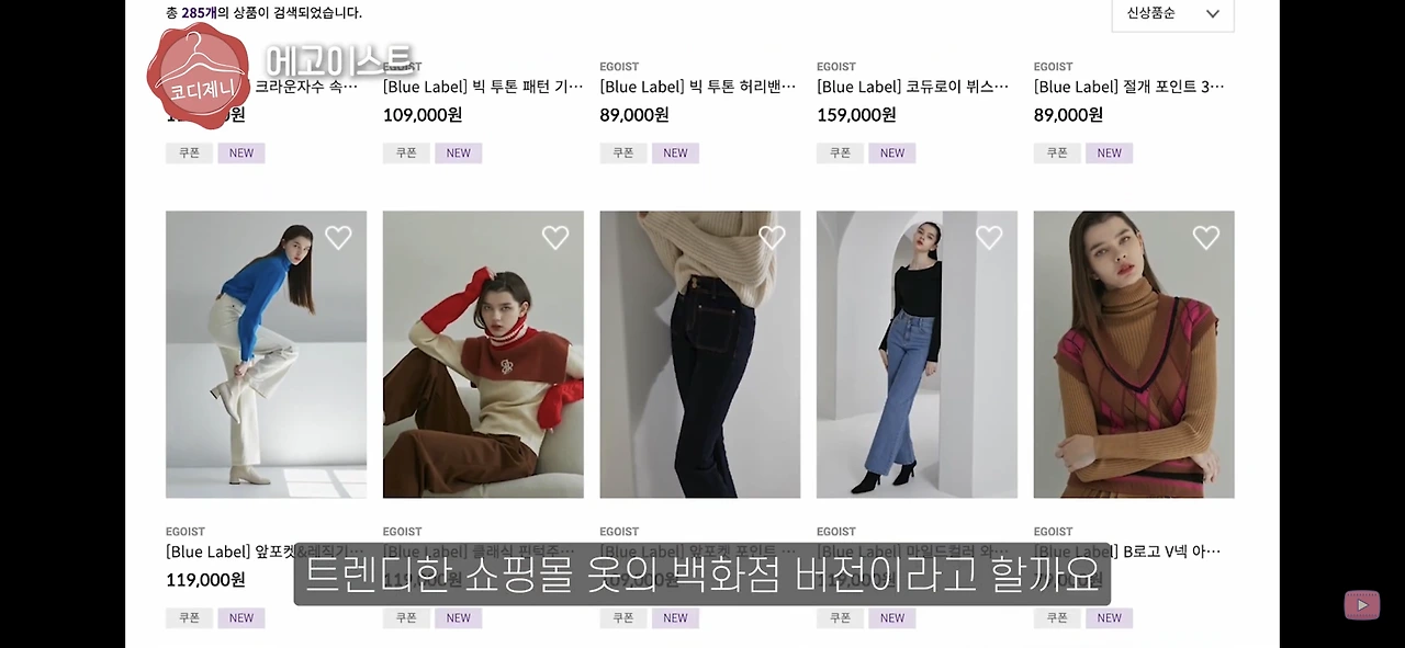 트렌디한 쇼핑몰 옷의 백화점 버전이라고 할까요