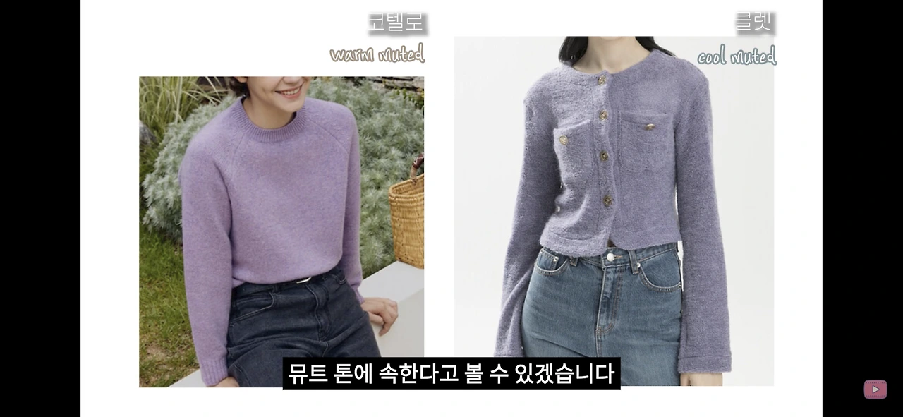 붉은 느낌이 나는 보라색이 웜톤 뮤트, 즉 가을뮤트 컬러이고, 푸른 계열의 보라는 여름뮤트에게 어울립니다.