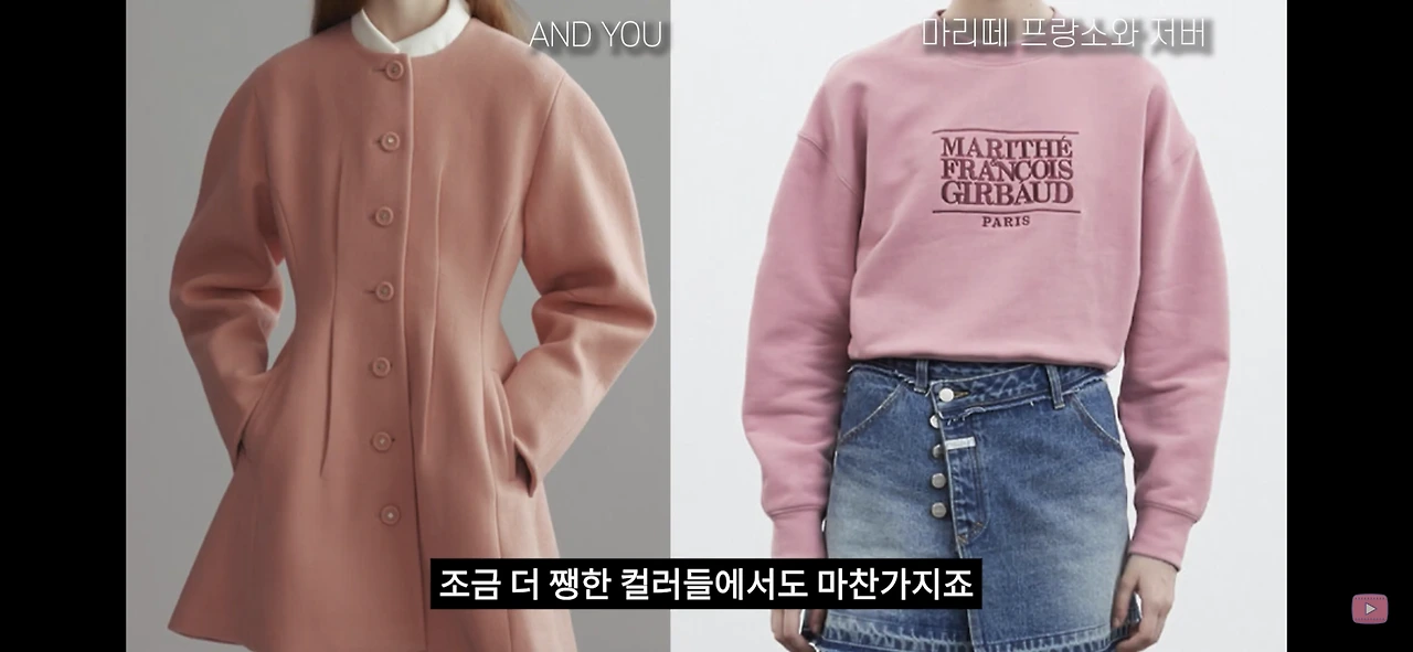 블론드 나인의 니트는 레드가 조금 더 강하게 들어가 있어서 웜톤에게 잘 어울리고, 마리떼 프랑소와 저버의 맨투맨은 여름 뮤트톤에게 어울리는 컬러입니다