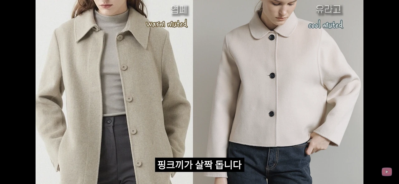 유라고의 코트는 아이보리 컬러에 핑크끼가 살짝 돌아 쿨톤에게도 어울릴 수 있고요