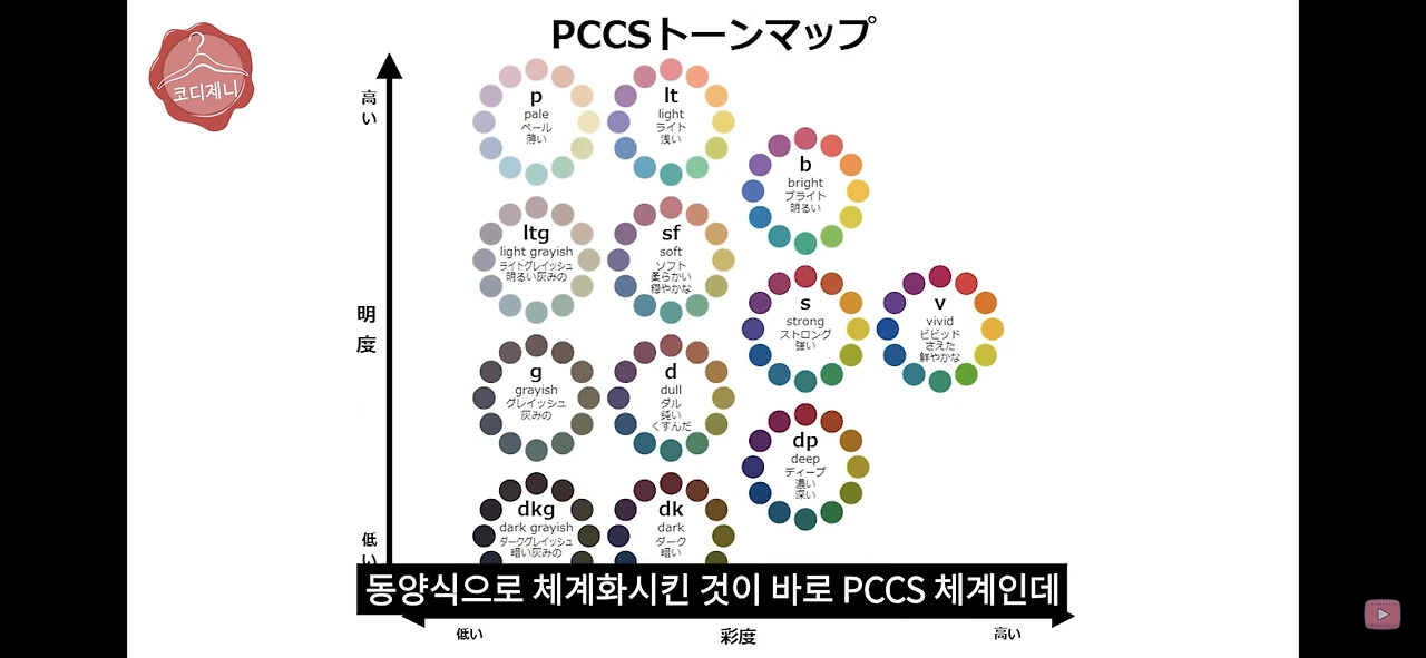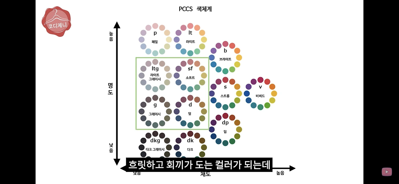 PCCS체계**에서 뮤트 컬러는 범위가 아주 넓은 편입니다